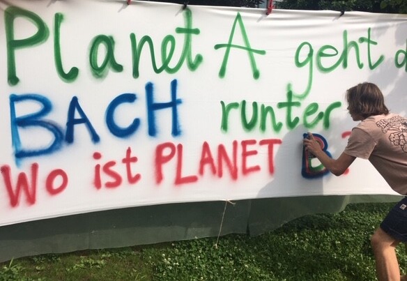 Nur so viel nehmen, wie die die Erde für uns bereit hält, solange es gleichmäßig auf alle Lebewesen der Erde aufgeteilt wird. Das wollen wir künstlerisch auf Leinwänden und Transparenten darstellen und so das Klimathema und seine Dringlichkeit wieder in die Köpfe rufen. Im Sommer werden die Werke, die an den Kreativ-Nachmittagen entstehen auf der Kufsteiner Innbrücke zum Bahnhof ausgestellt.