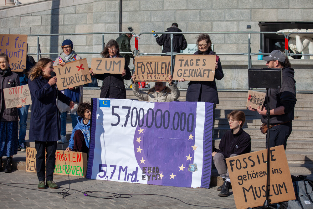 „Seit Jahren fließen Milliarden in eine überholte fossile Infrastruktur, während bei Sozialem, Gesundheit und öffentlichem Verkehr gekürzt wird“, so Laila Kriechbaum, Sprecherin von Fridays For Future. Die jährlich rund 5,7 Milliarden Euro an klimaschädlichen Förderungen seien „kein schlechter Aprilscherz, sondern leider politische Realität“.